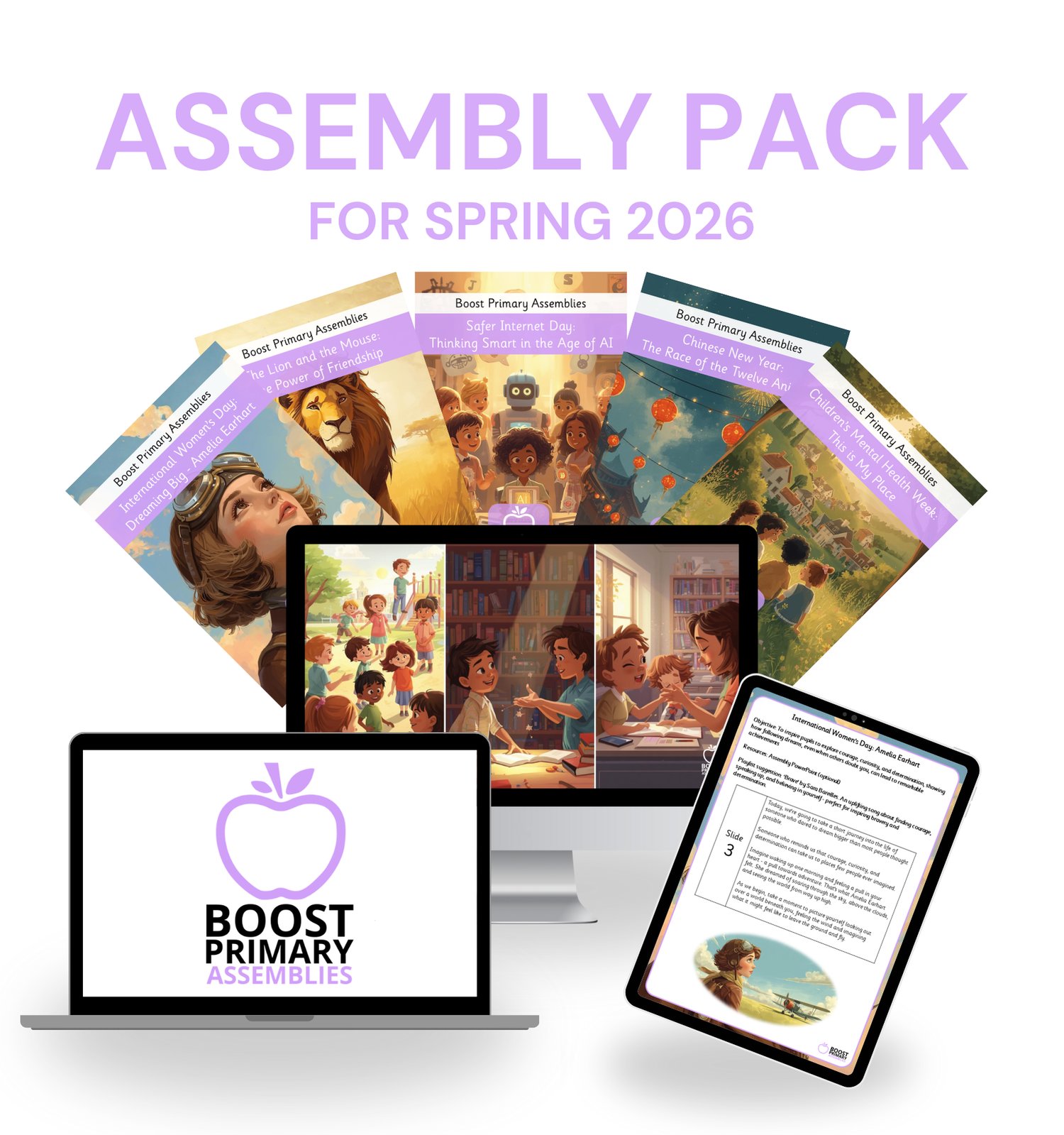 Our Free Primary Assembly Pack, containing 11 fully resourced assemblies, is the ideal resource for teachers and school leaders who are looking to inspire and captivate young learners. Each assembly comes with a ready-to-use script and engaging slides, allowing you to skip the planning and reduce your workload!