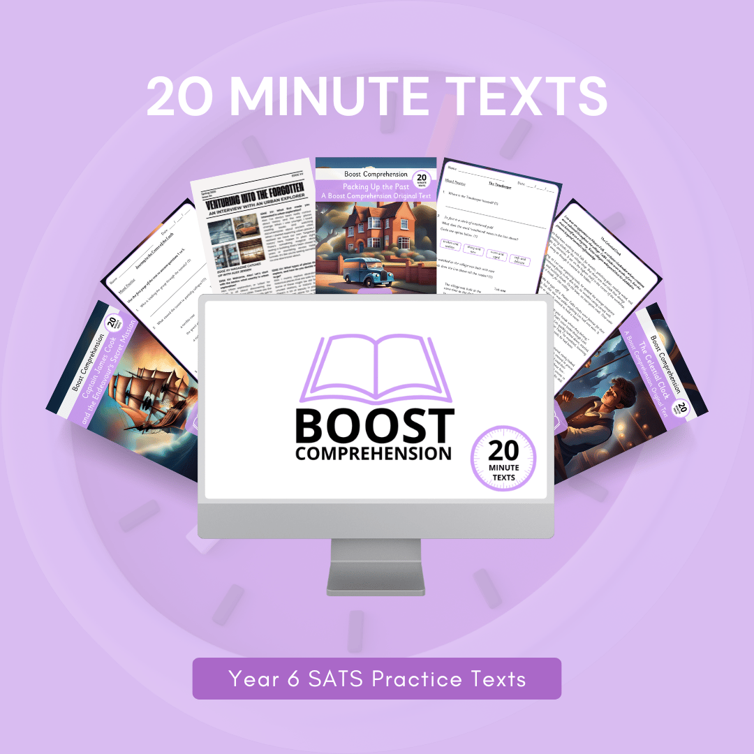 Boost Primary’s Twenty Minute Texts pack provides short, focussed comprehension activities, helping children practise SATs-style questions in manageable chunks that mirror sections two and three of the reading paper.